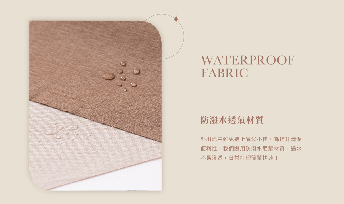 ● 防潑水材質,適應多種天氣。