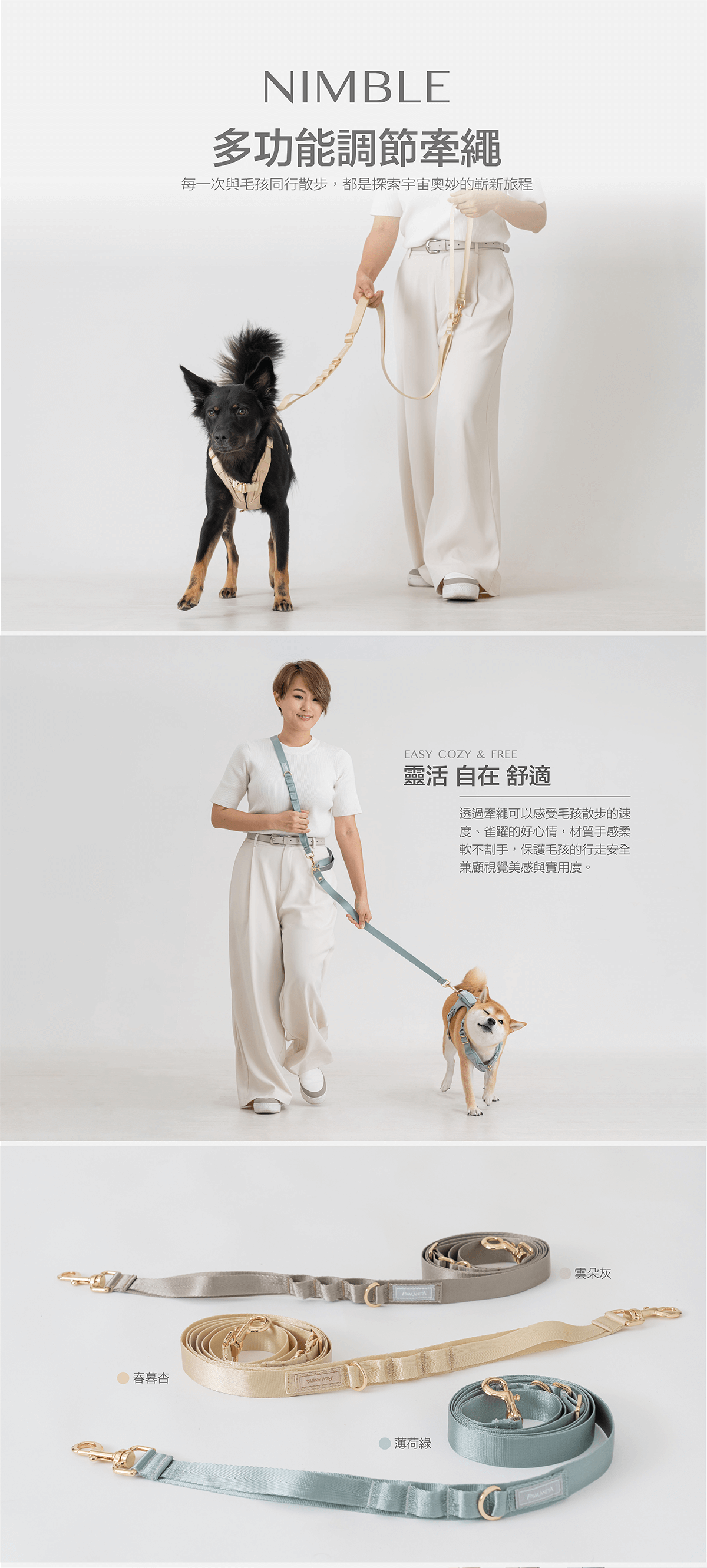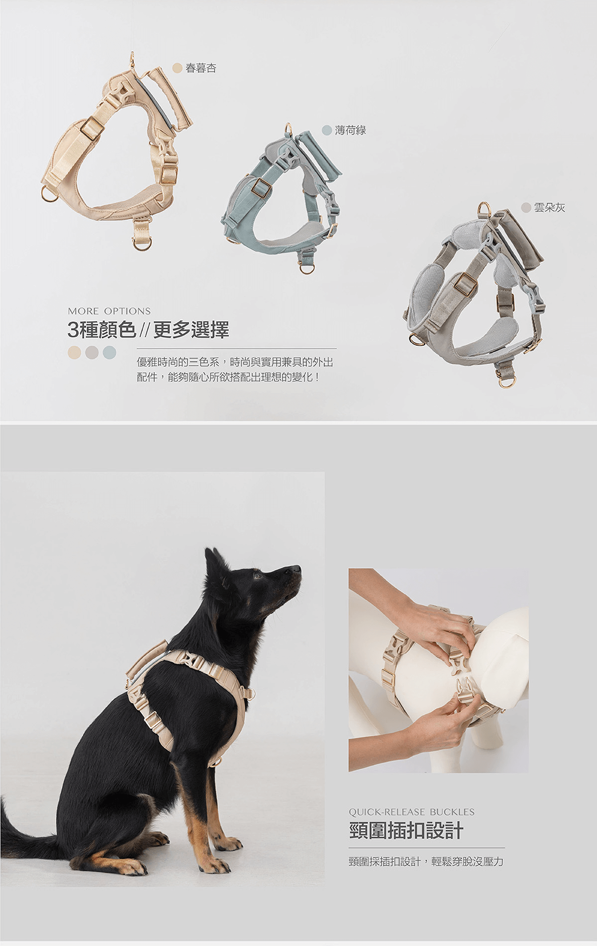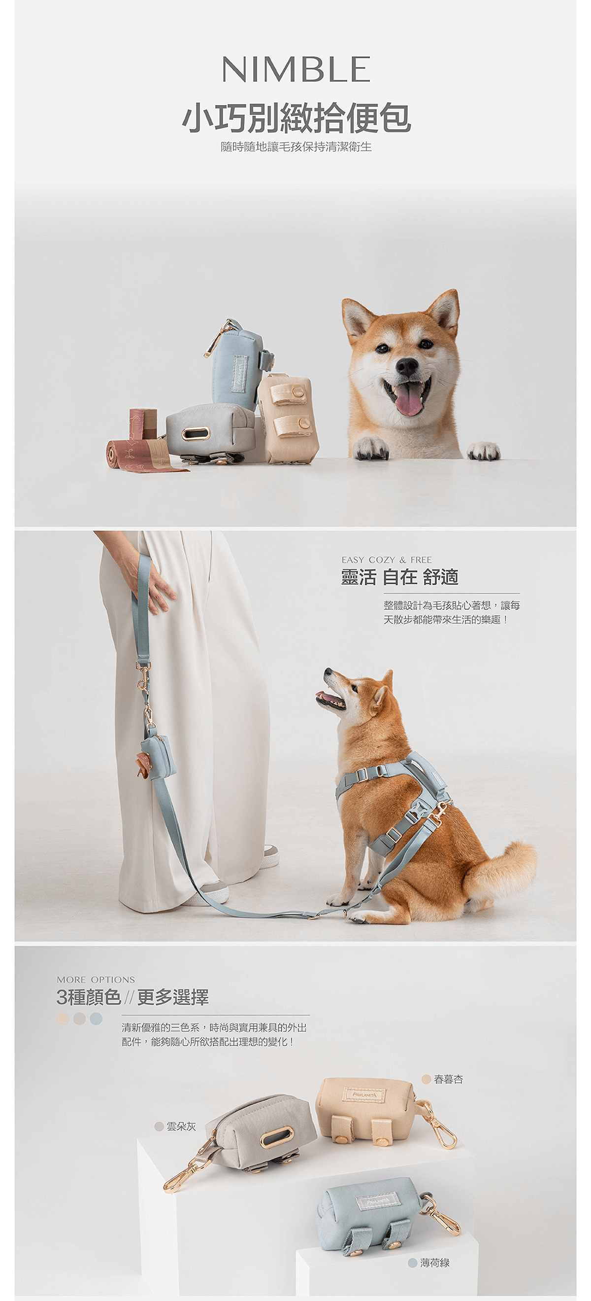 實用裝備一次購足三樣必備單品 胸背帶+雙牽繩+拾便袋