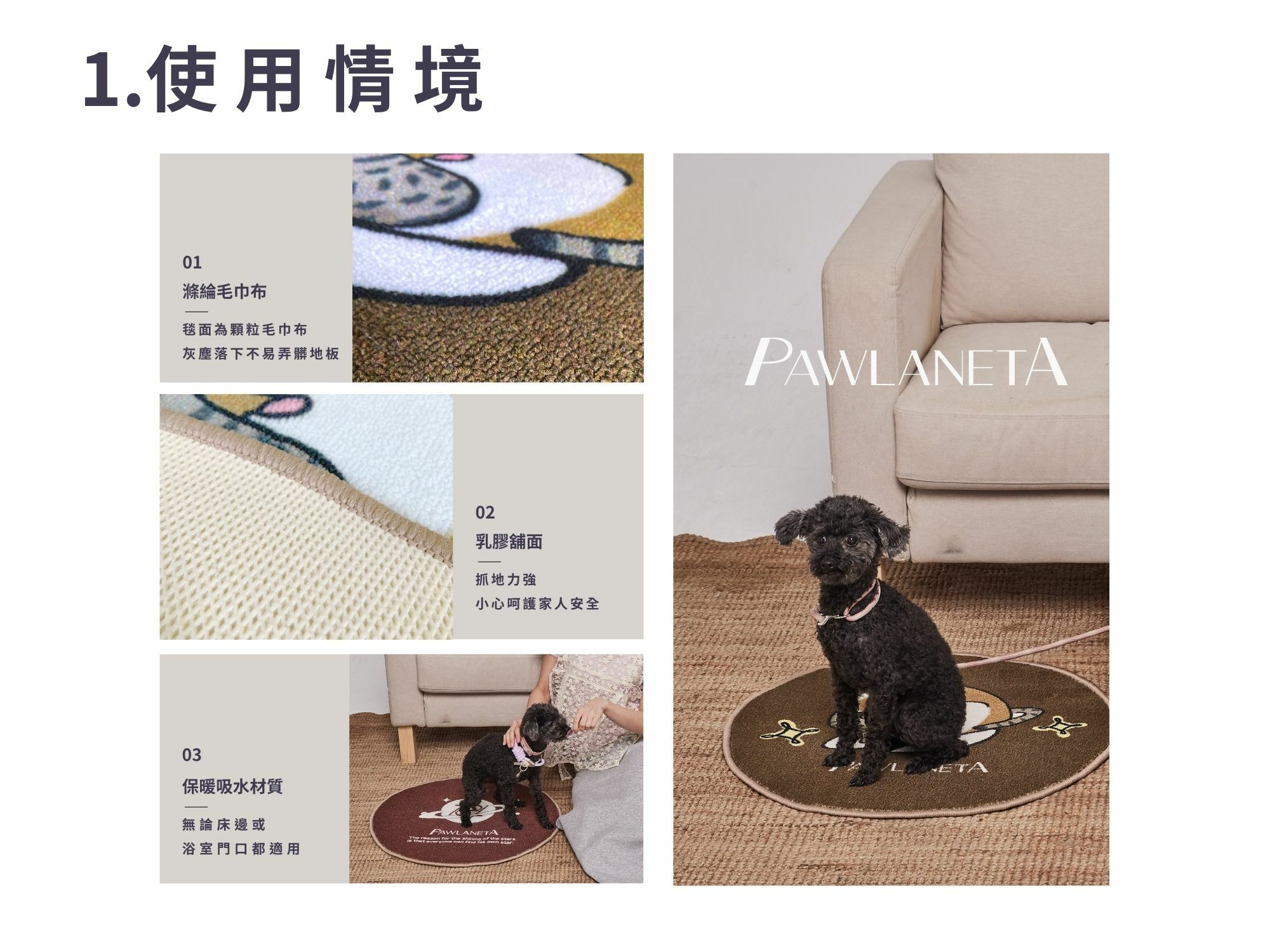 ●保暖吸水材質,床邊或浴室皆適用。