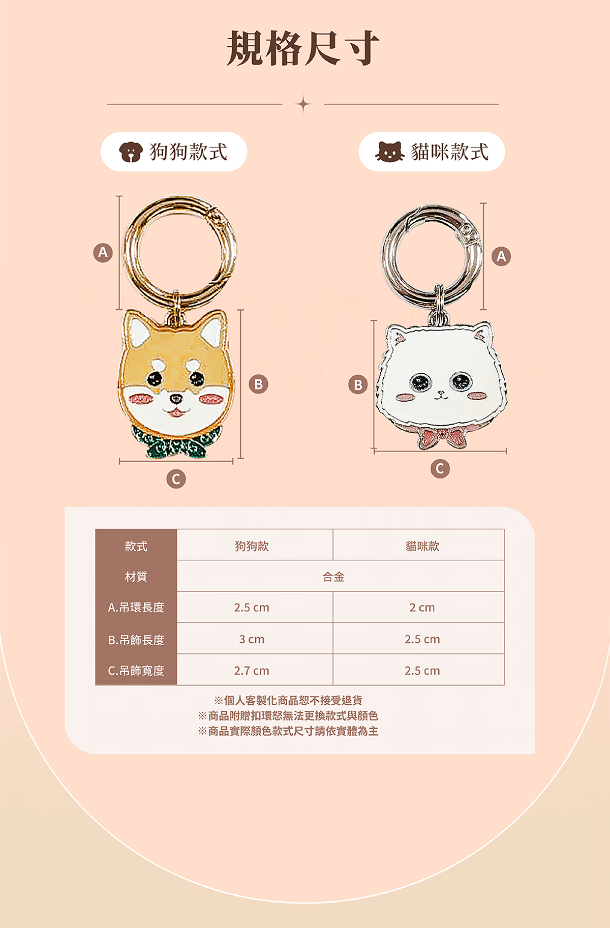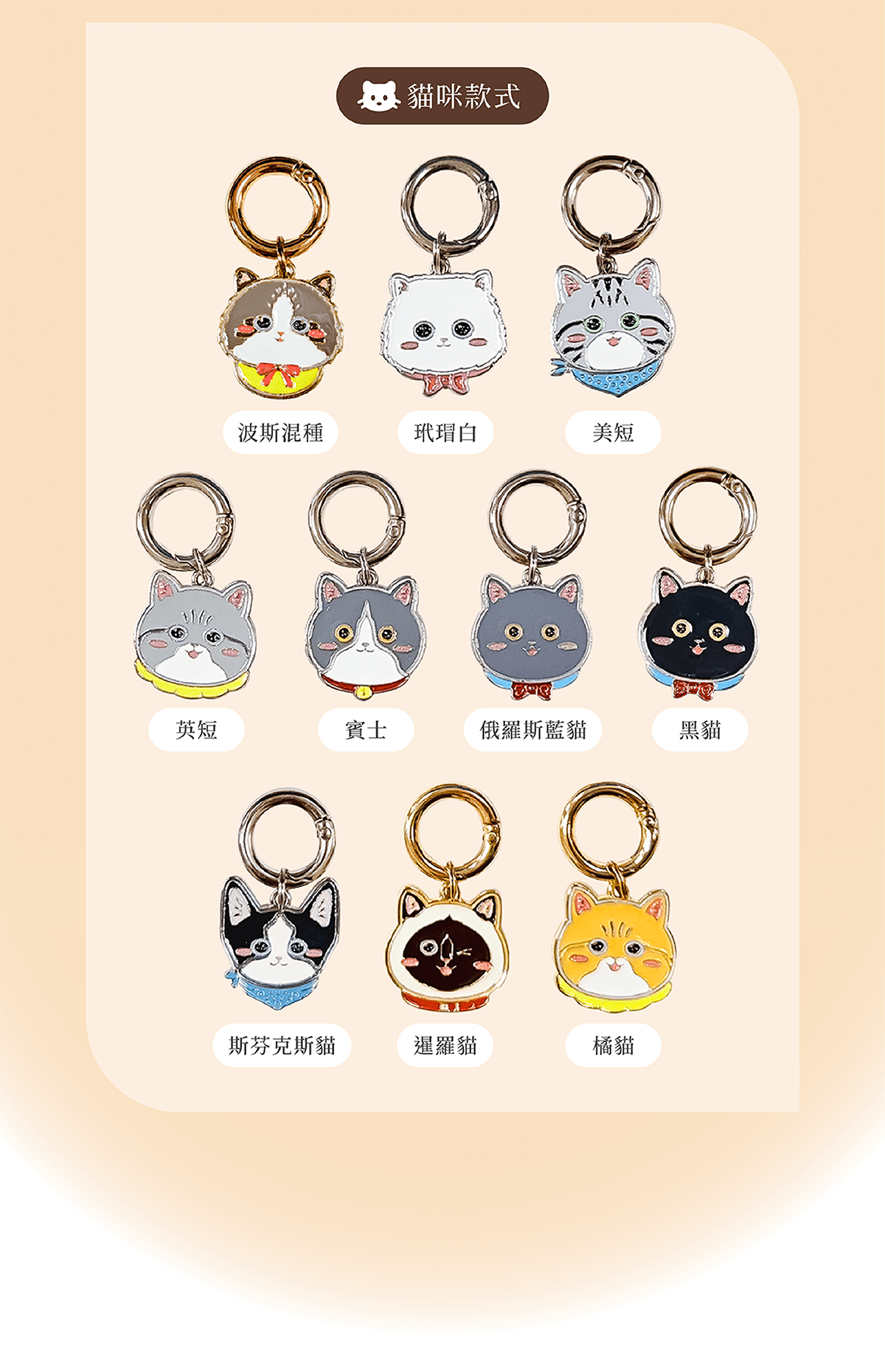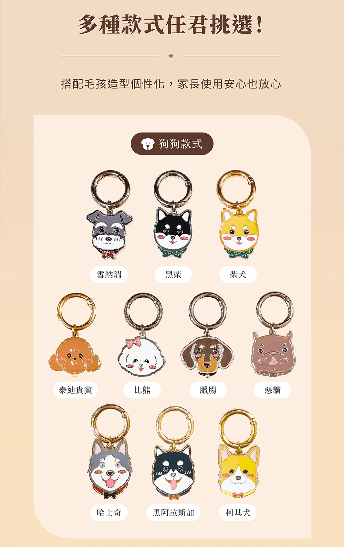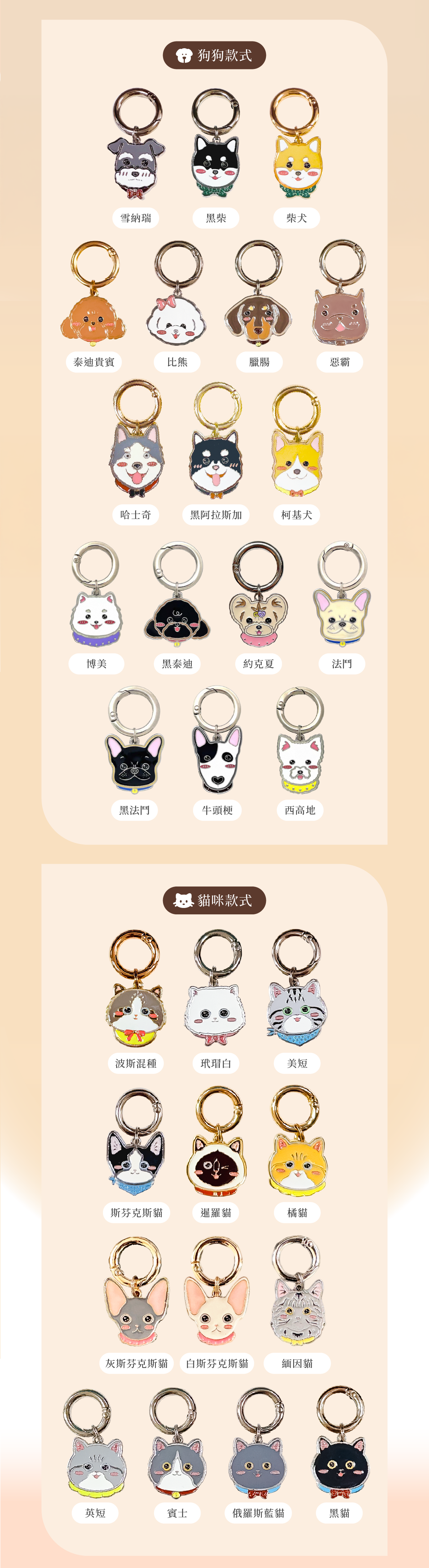 🎨 個性化設計專屬毛孩,提供多款圖案可選擇讓家長訂製專屬寶貝吊牌守護牠的安全