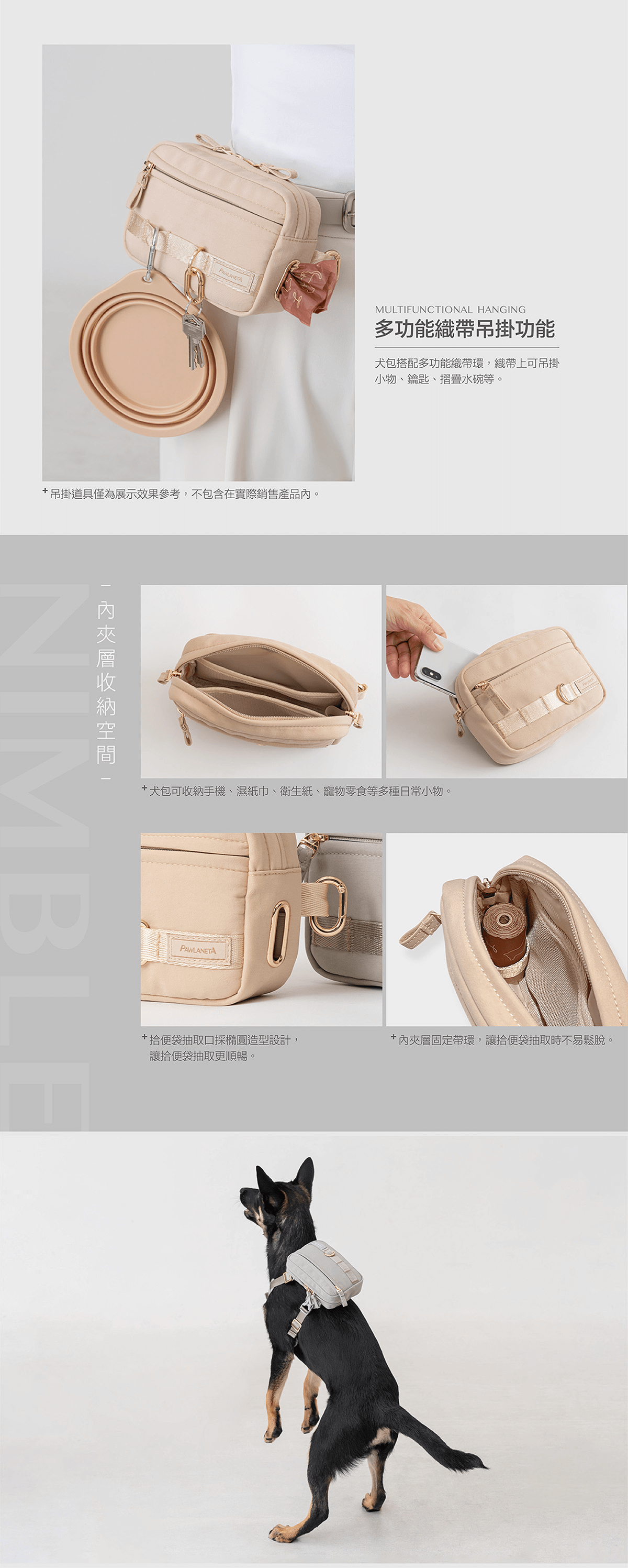 🎒 多夾層收納 + 多功能織帶吊掛|外出裝備小物皆可收納,一袋搞定人寵需求。
