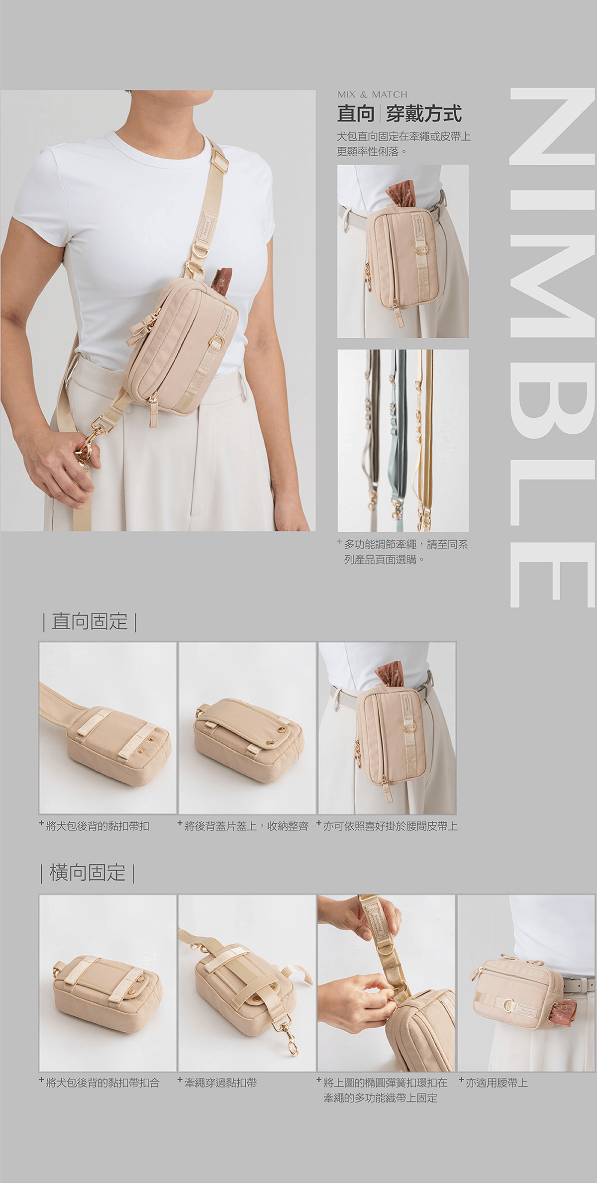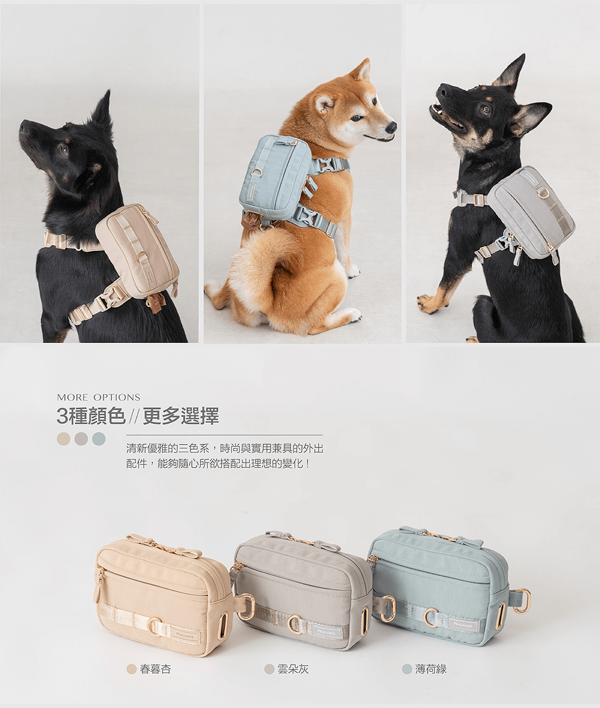 🔗 3種背法自由搭配|可當腰包、犬背包或外掛牽繩,可依需求切換。