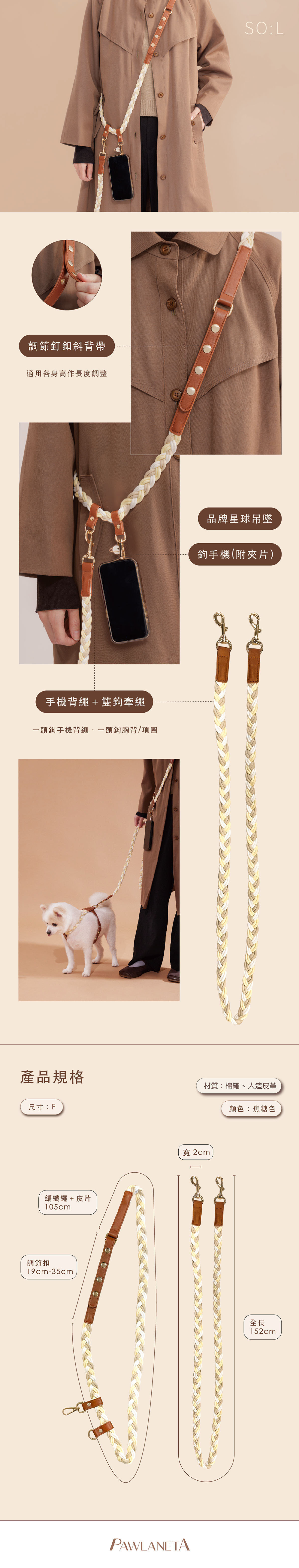 ●結合牽繩與手機背帶,散步時輕鬆解放雙手。