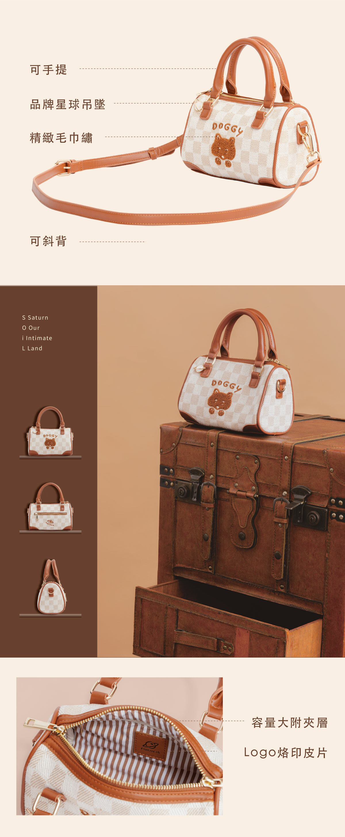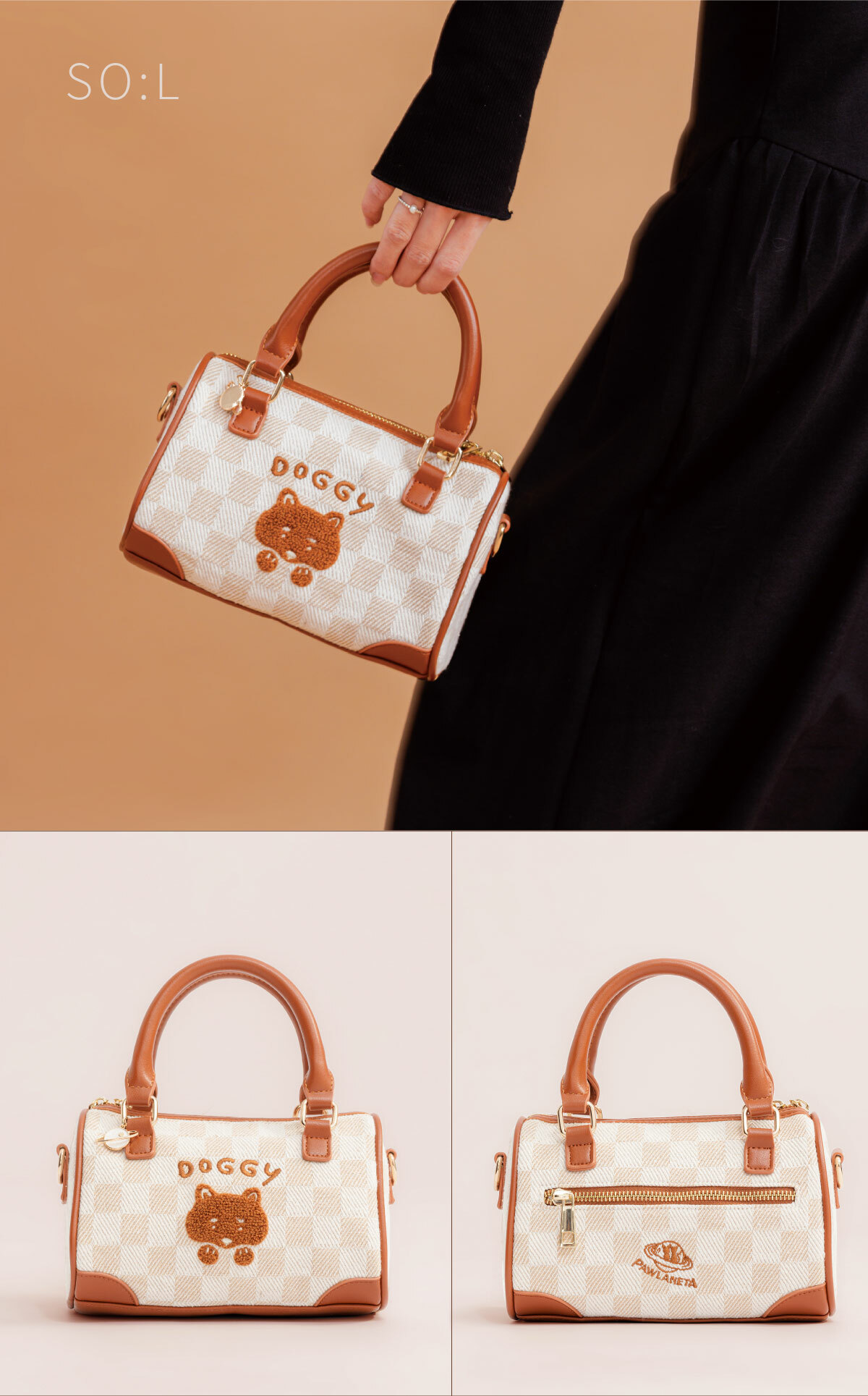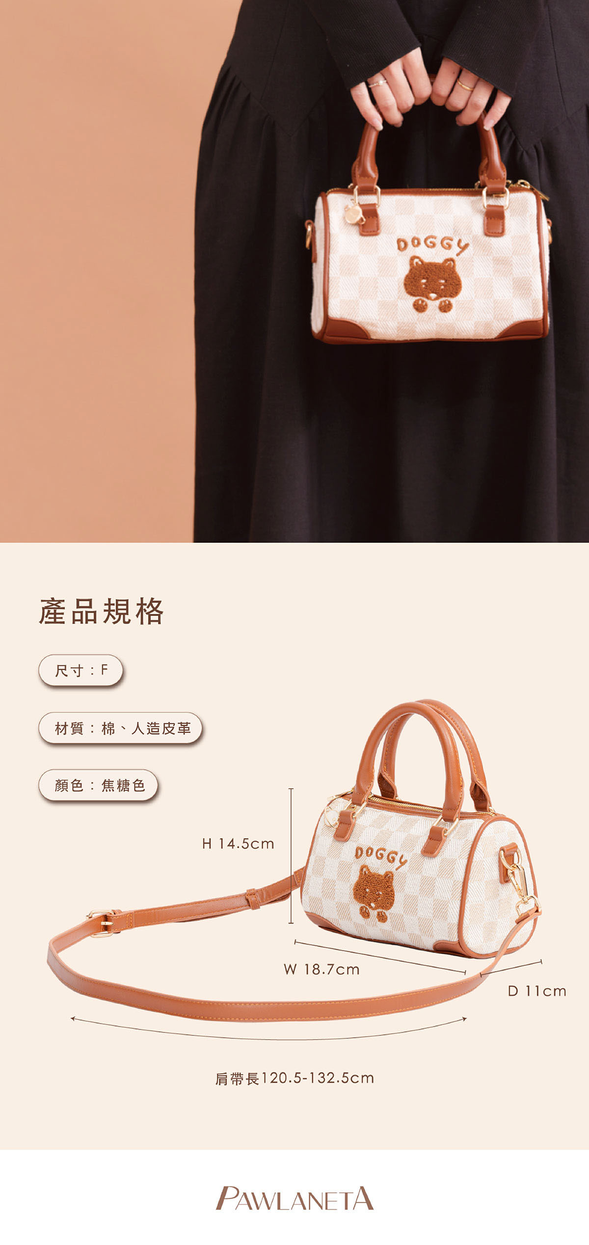 ●精緻寵物波斯頓包美,結合立體毛巾繡與皮革拼接。