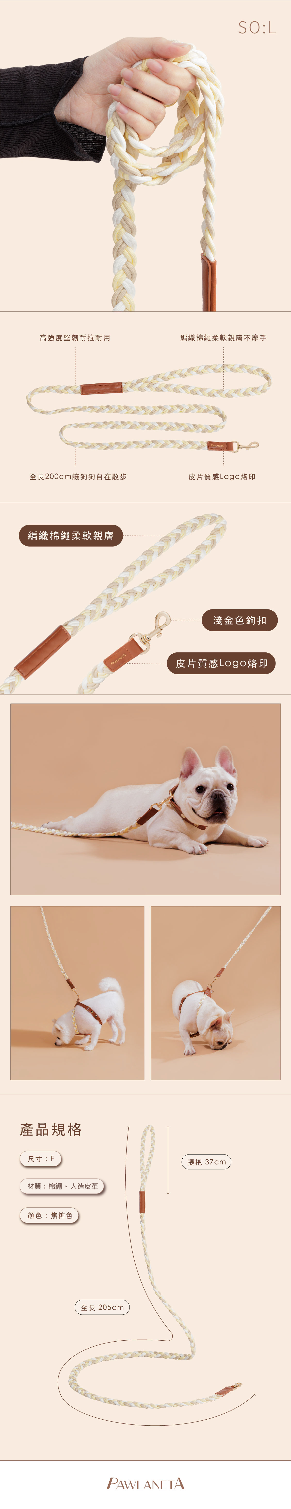●手工打造,奶油色編織棉繩與焦糖色皮革拼接,高雅質感。