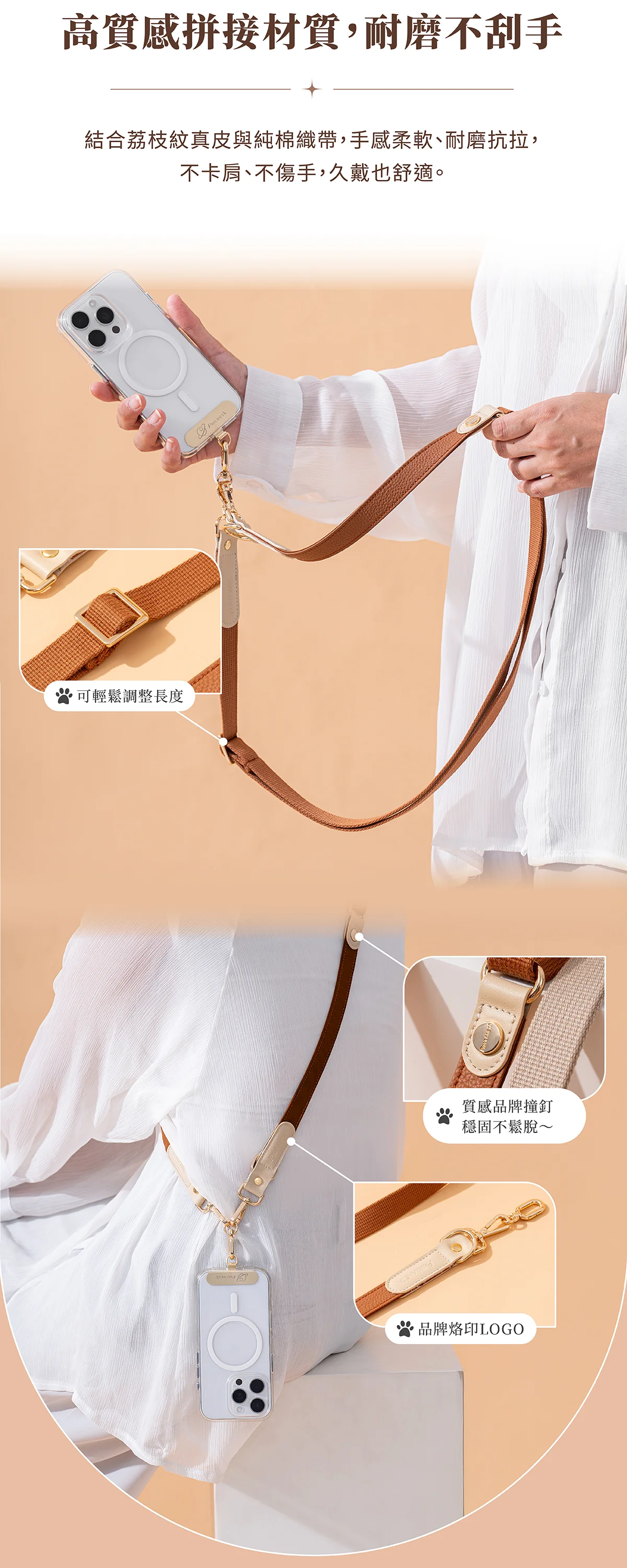 💡柔軟真皮 × 棉織帶拼接、舒適親膚,長時間配戴依然輕盈不卡肩、不勒脖。